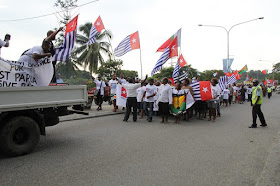 Hari ini tanggal 19 juni 2015,Telah terlihat Warna Merah,Biru, Putih bendera Bintang Kejora berkibar di Honiora Ibu kota Negara Salomon.Ibukota Kepulauan Solomon hari ini semua penduduk setempat menunjukkan sikap dukungan penuh terhadap keluarga Melanesia Papua Barat.Di antara para demonstran yang bergabung menuntu tegas kepada negara-negar melanesia dan pimpinan SGM adalah berbagai kalangan solidaritas yaitu tokoh masyarakat, politisi, menteri gereja dan pendukung muda.Wartawan diperkirakan kerumunan di lebih dari 800 yang berbaris dari pasar sentral kota ke gedung utama pemerintah, tidak jauh dari kantor Perdana Menteri Mannaseh Sogavare. Demontrasi berakhir di Heritage Park Hotel di mana para pejabat senior MSG bertemu untuk menyelesaikan agenda Pemimpin mereka KTT dua tahunan di tempat yang sama minggu depan.